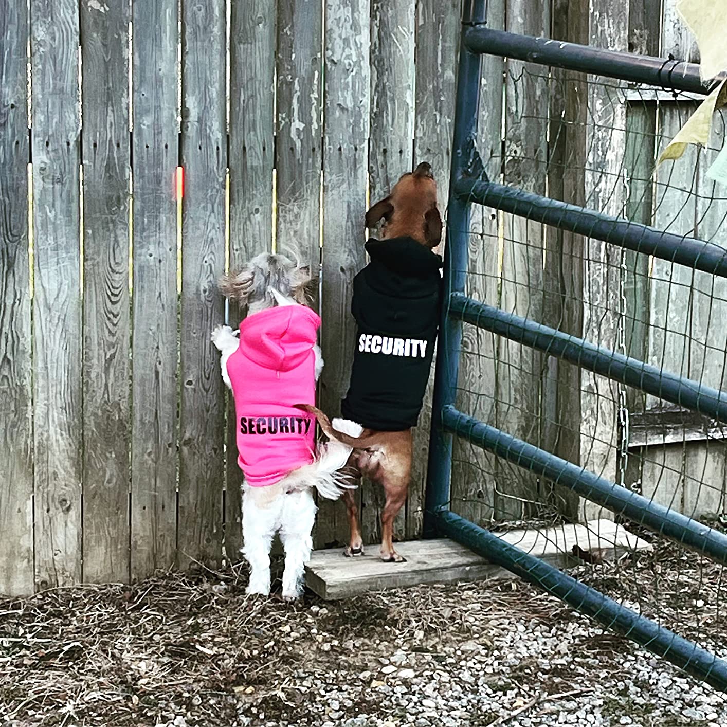 My dogs act like they’re in charge of the whole neighborhood so I thought they might as well dress like it. The first time I put the sweatshirts on them they didn’t want to walk because the sleeves went past their elbows so it freaked them out. I took a seam ripper and gently removed the sleeves and they’ve loved them ever since. I sent this picture to my next door neighbor whose dogs mine were barking at in the photo and he cracked up. Would definitely recommend!